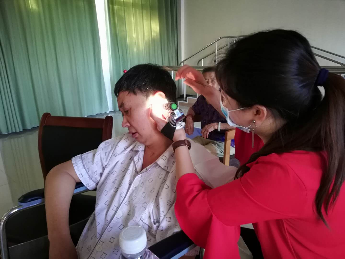 9月3日广西康复理疗行业资深专家杨老师到我院开展耳部慈善护理活动,为我院的老人进行了
