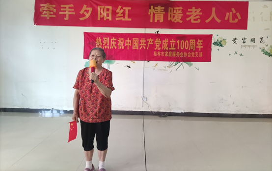 7月9日下午,桂林中程七里坪居家养老中心携手桂林市临桂区幸福家园养生养老中心开展文艺表演活动,庆祝中国共产党成立100周年,热烈歌颂党的光辉历程,丰富老人们的精神文化生活。