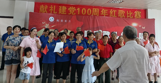 2021年6月20日上午,桂林市临桂区幸福家园养生养老中心老人、职工欢聚一堂,开展“唱支歌儿给党听”的红歌演唱比赛活动。在院老人与职工用一首首气势磅礴、雄浑激昂的红色歌曲,唱响庆祝建党100周年的嘹亮赞歌。